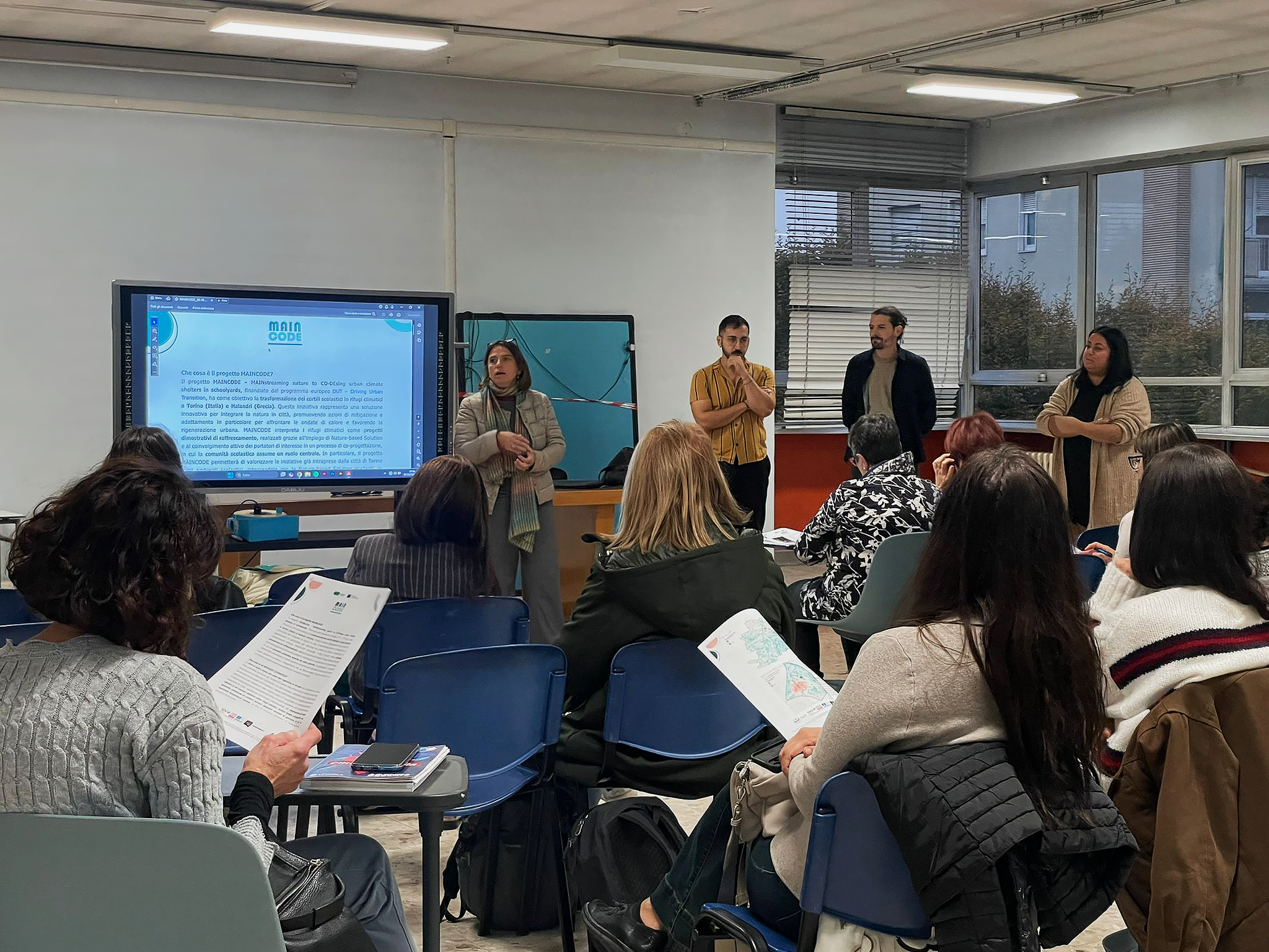 On 29 October 2025, MAINCODE held the first co-design meeting with teachers from Carlo Levi Primary School in Turin. The session focused on identifying teachers’ expectations, outlining the project roadmap, and defining the scope of future activities related to the creation of climate shelters in the school’s outdoor spaces. The co-design phase, organised and facilitated by Urban Lab, marks the beginning of a collaborative process fostering dialogue and creative exchange among participants.