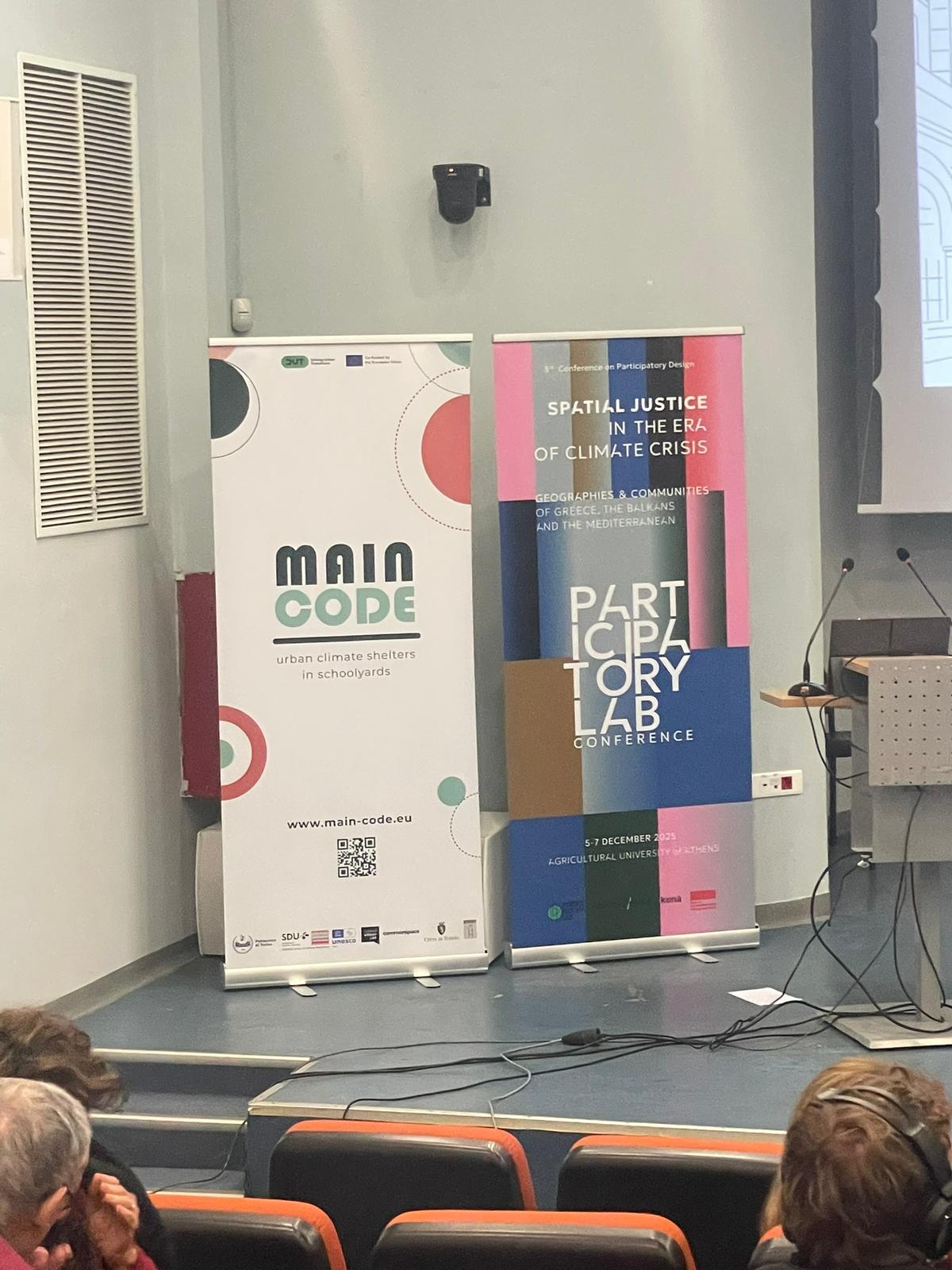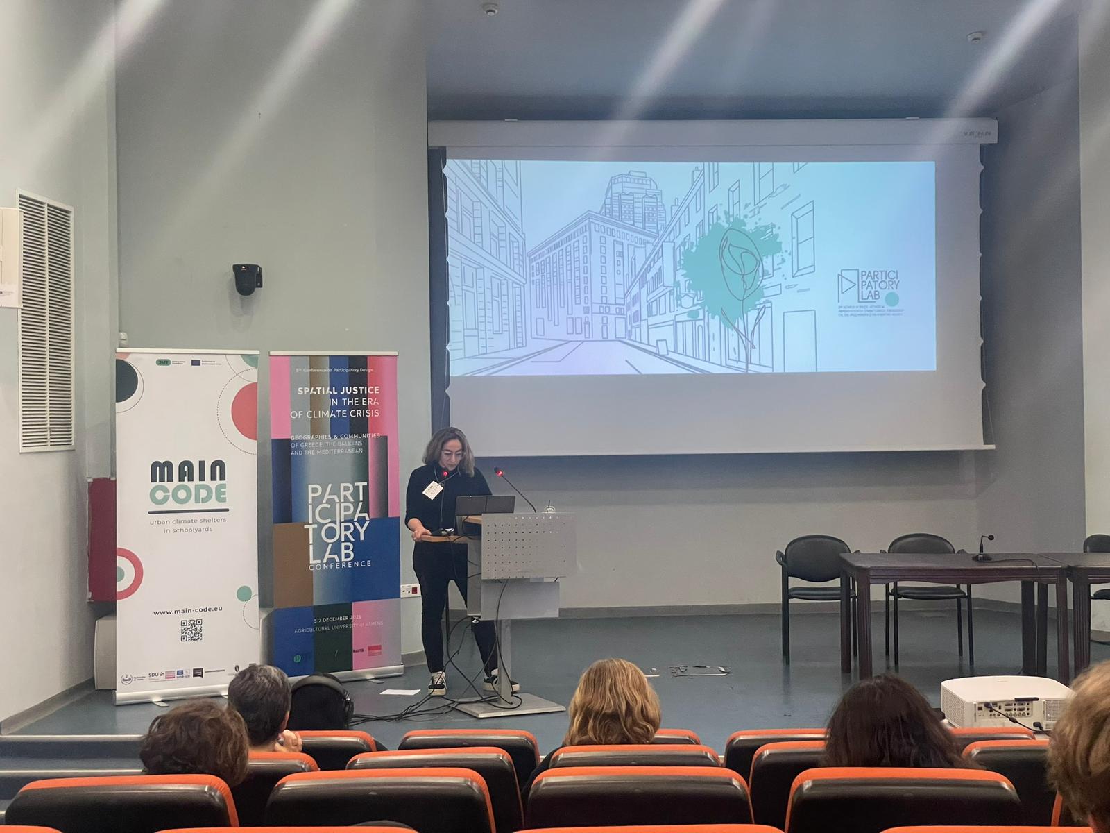 MAINCODE took part in the Participatory Lab Conference: Spatial Justice in the Era of Climate Crisis, held from 5 to 7 December at the Agricultural University of Athens. MAINCODE contributed to the session “Participatory pathways for nature-based urban transformation: Insights from DUT MAINCODE and local practice.” Additionally, MAINCODE presented its video during the “Films & Video Screenings” session at the M2 Agricultural Museum.