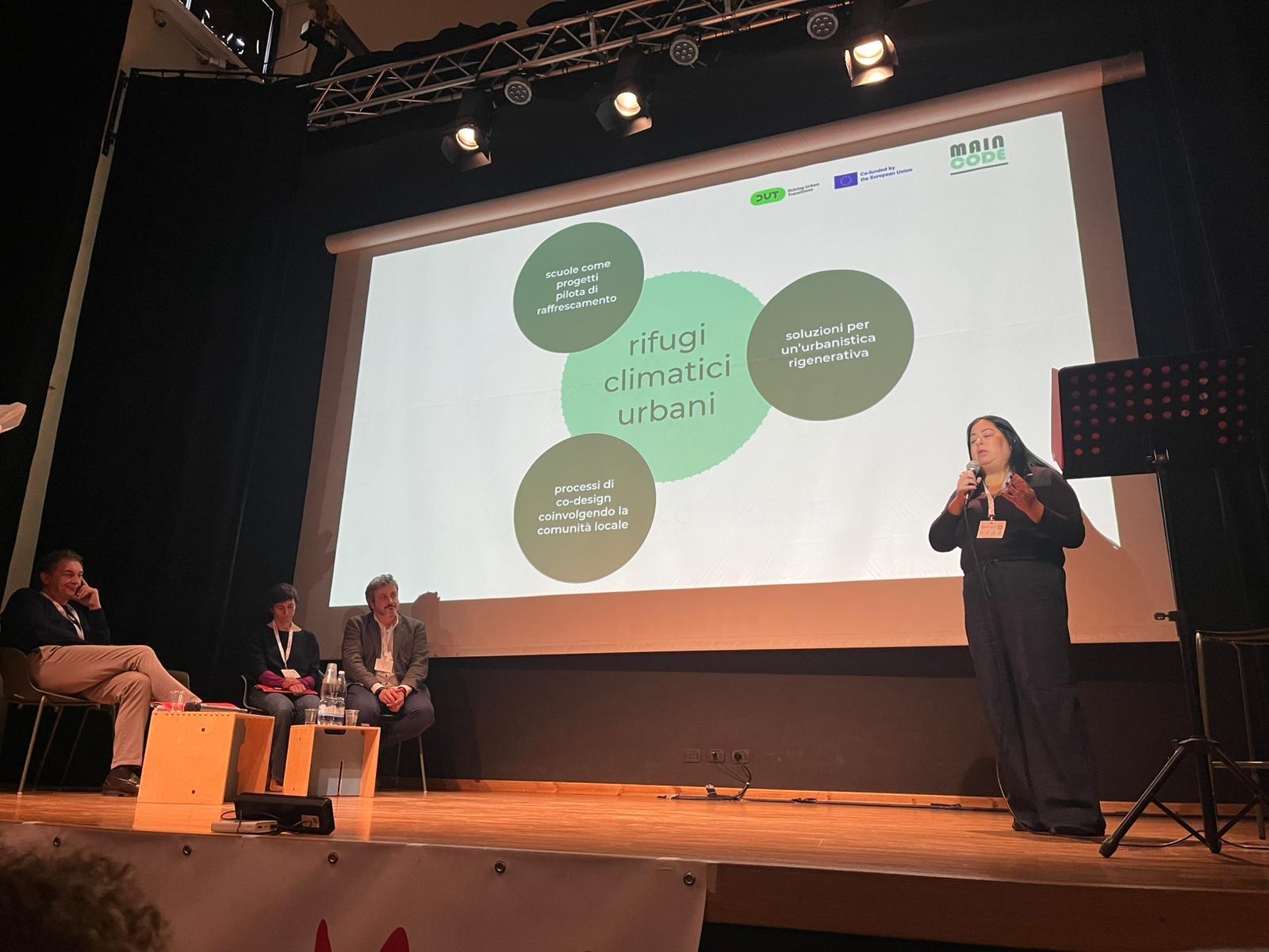 MAINCODE took part in RigenerAzioni, an event dedicated to re-thinking and re-generating spaces for the future, held on 22 November at Teatro Belloc in San Giorgio Canavese. The programme focused on climate adaptation, urban green strategies, civic participation, and concrete actions for community well-being. Contributions included presentations on urban climate shelters, greener and safer streets, and the social impact of urban and territorial regeneration. MAINCODE contributed to the discussion by highlighting the regenerative potential of urban climate shelters as key instruments for fostering more resilient and inclusive cities.