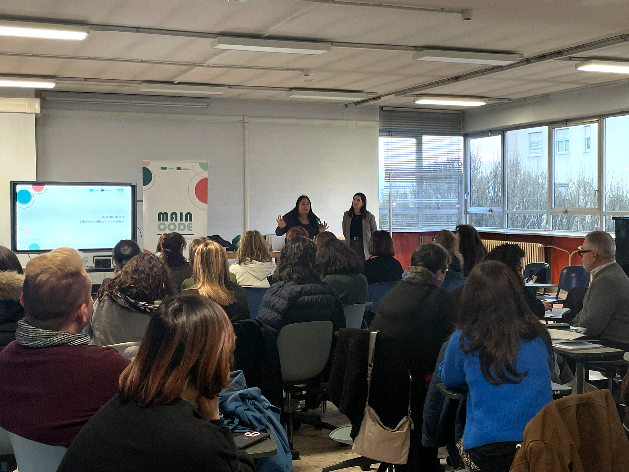 On 18 March, MAINCODE organised a capacity-building event for teachers of Carlo Levi Primary School in Turin. The event is part of the co-design process aimed at transforming schoolyards into climate shelters through the integration of nature-based solutions. During the session, educators are introduced to key concepts of climate shelters and practical tools for transforming schoolyards into safe, accessible, and inclusive public spaces. The insights gathered guide the next phases of co-design workshops with stakeholders and students.